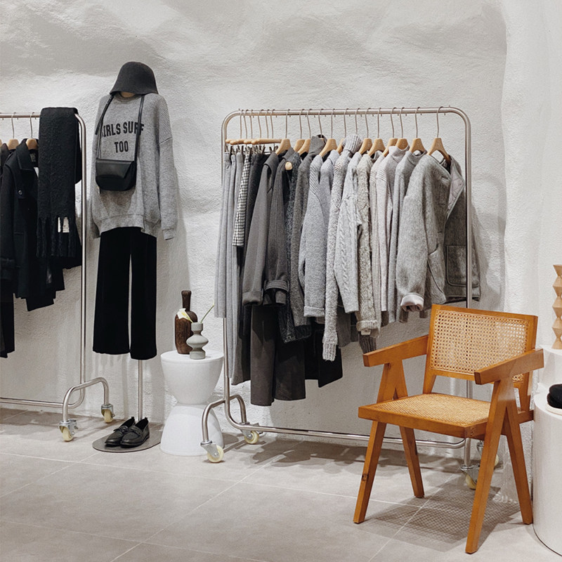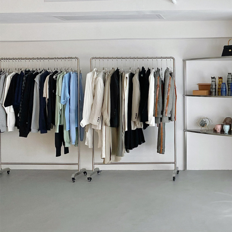 Clothing store display stand Floor-to-ceiling display rack with wheel Nakajima hanging rod hanger hanging side hanging women's store shelf