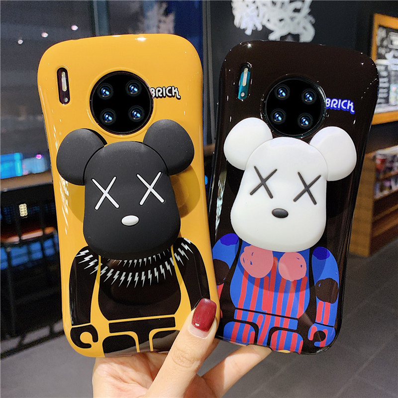 Boomer bear Huawei mate30 mobile phone protective shell anti-fall mate30pro small brute waist m30 cartoon Women's soft silica gel cute mt30 folding bracket mate30epor