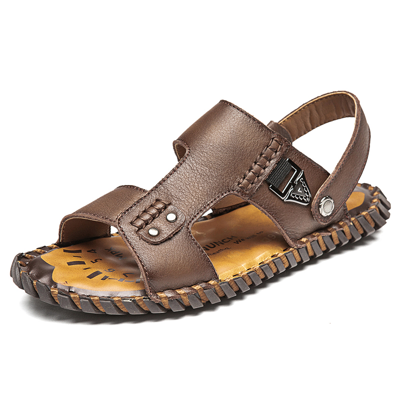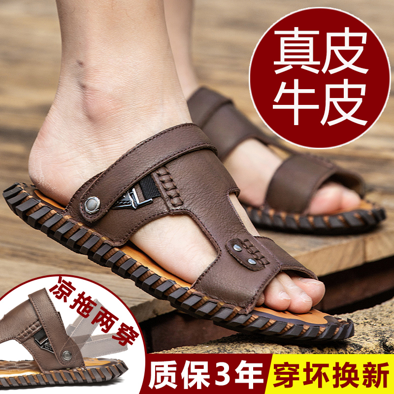 Bull Leather Sandals Men Genuine Leather Summer 2022 New Trends Men Slippers Dual Use Soft Bottom Outside Wearing Non-slip Beach Shoes