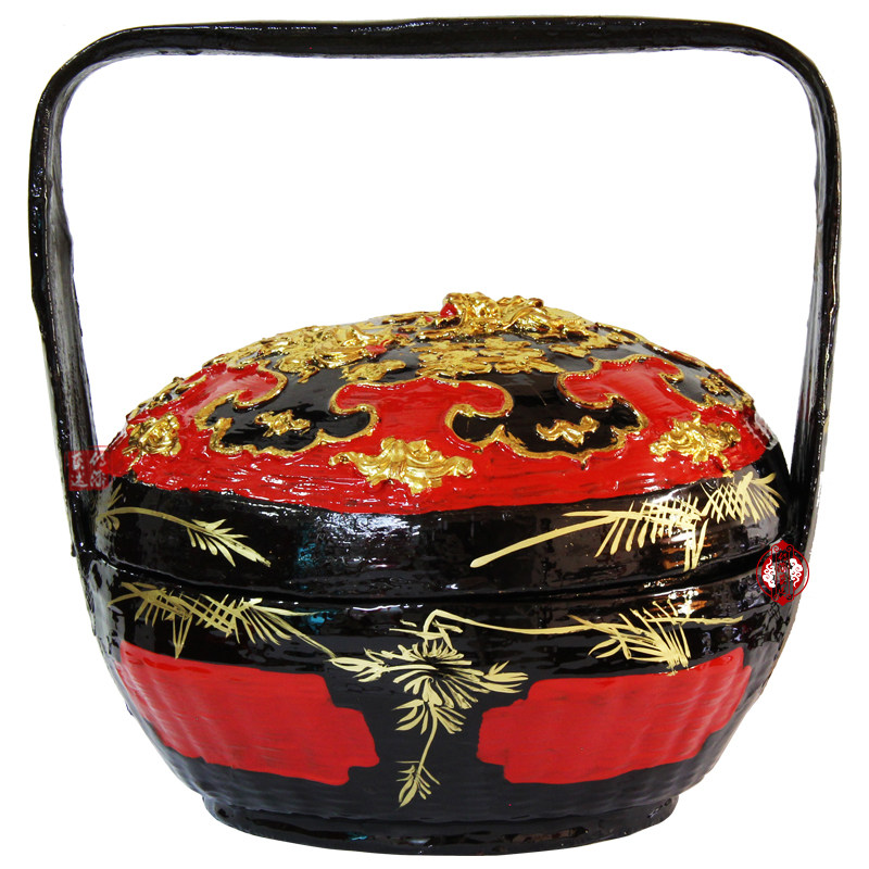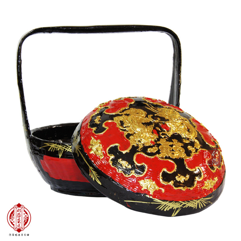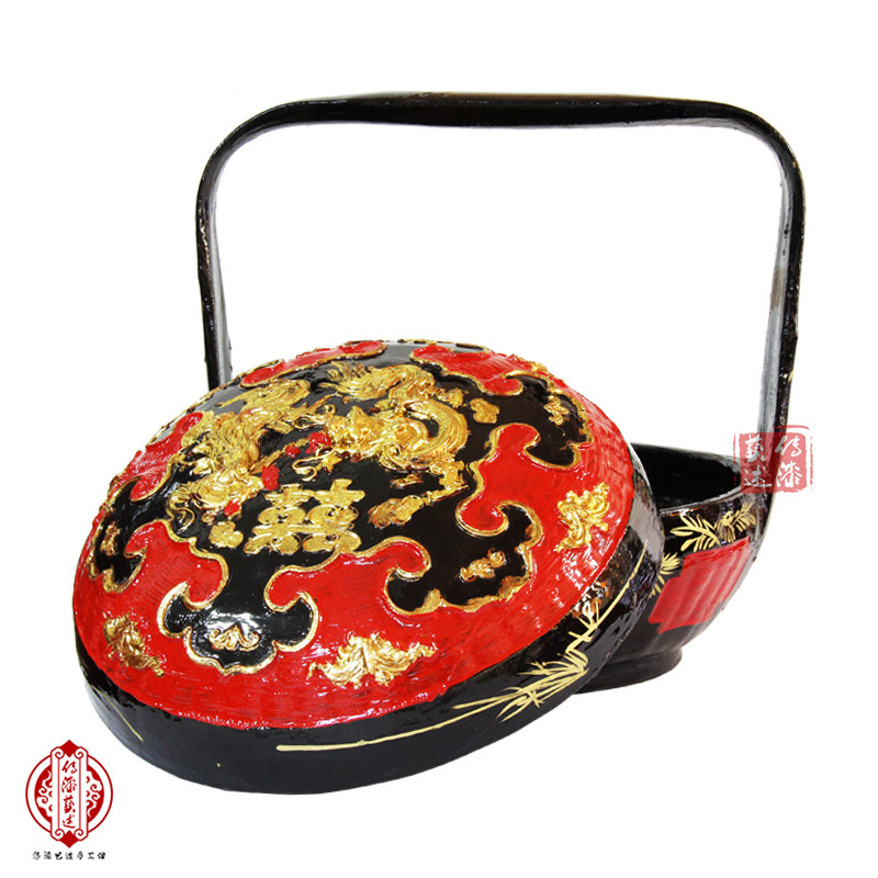 Special spot Yongchun lacquer basket hand-carved dragon and phoenix bamboo weaving large lacquer wedding burning incense bye bye basket folk lacquer art