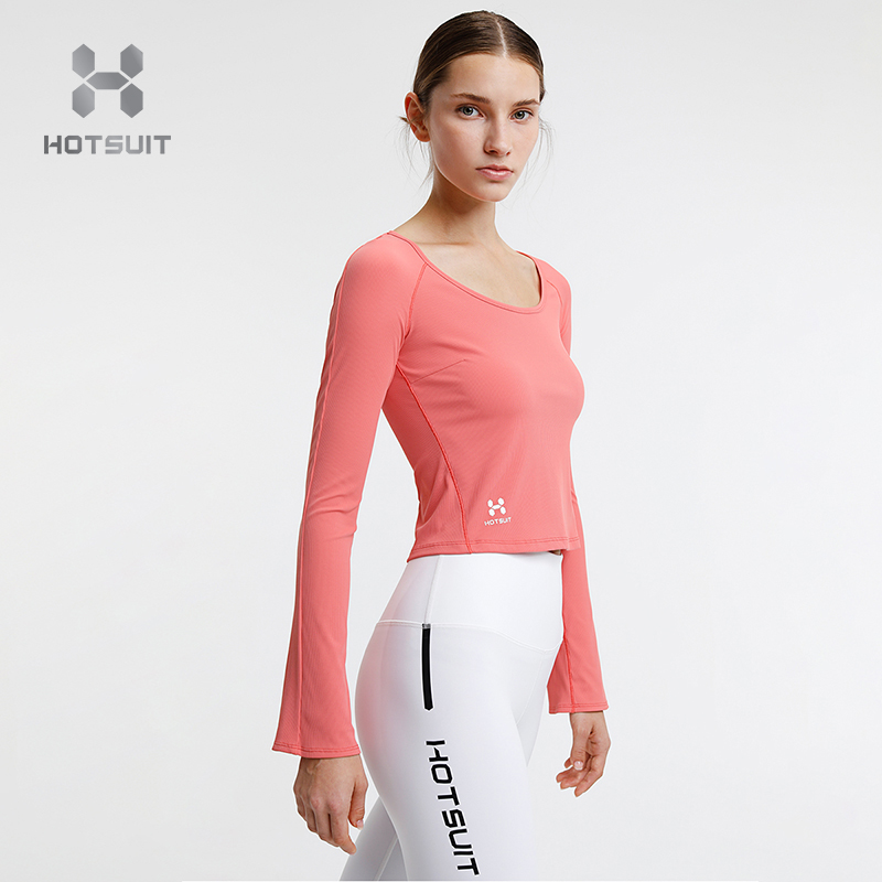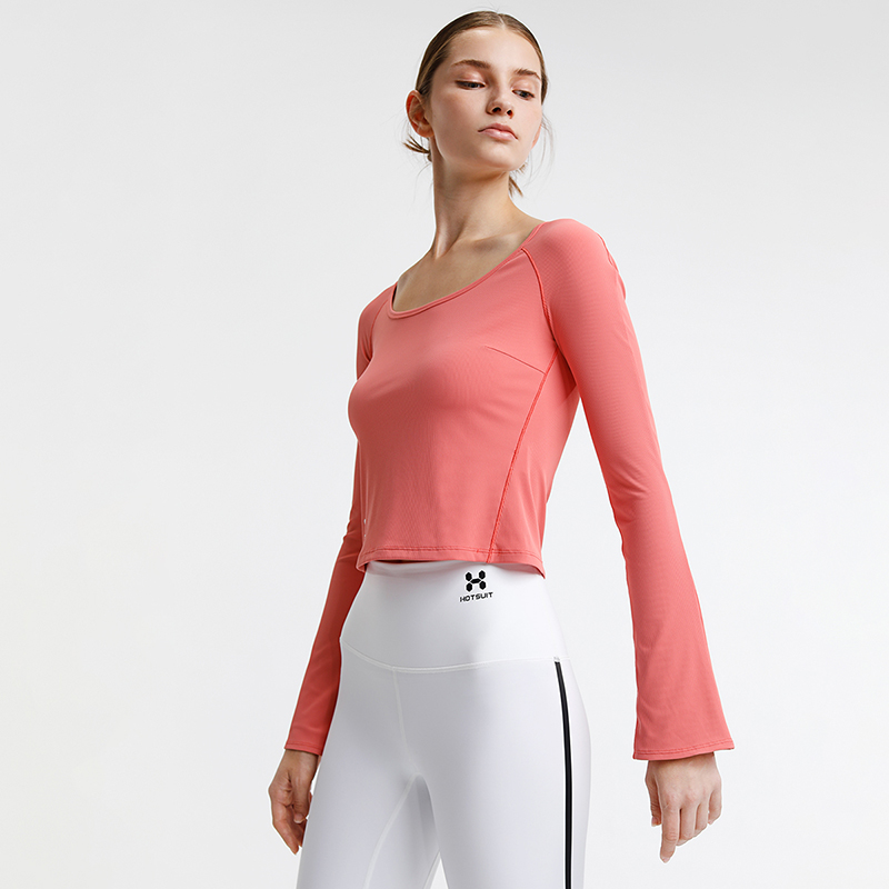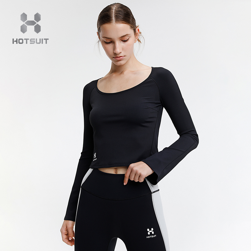 HOTSUIT post-show yoga clothes women's bell-sleeved navel top women's spring sports fitness clothes women's elastic thin