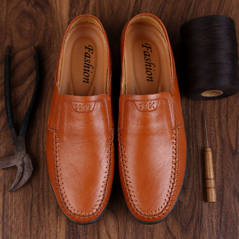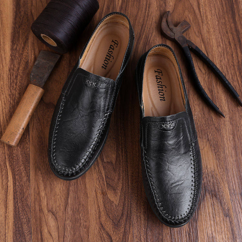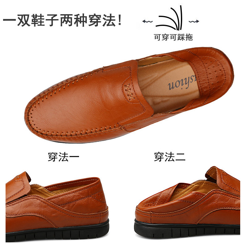 2022 new men's genuine leather casual leather shoes Men's shoes Business Korean version 100 hitch bean shoes Soft bottom sloth shoes Boomers