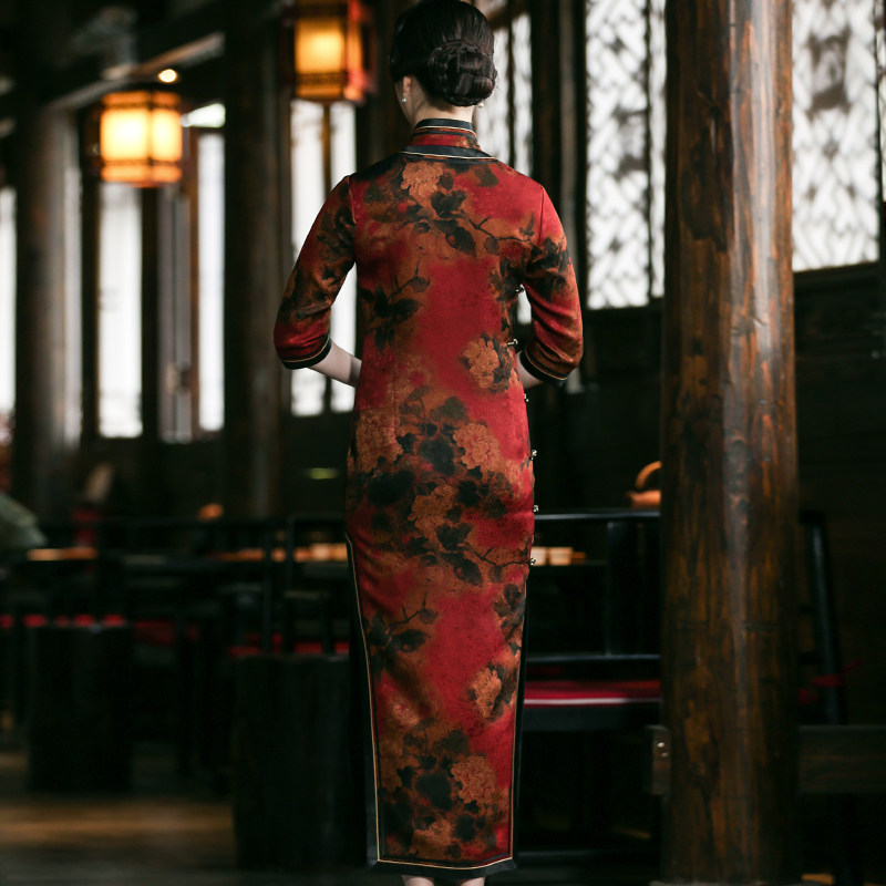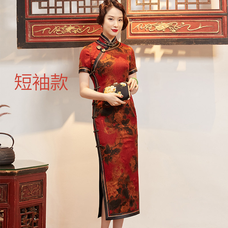 Xi Yue 2022 Spring New Retro China Wind Real Silk Scenographic Clouds Veil Mother-in-law Long Version Qipao Mother Foreign Dress