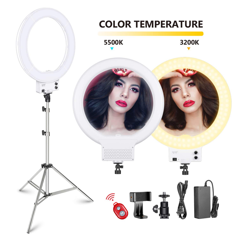 18 inch RL-18 ring lamp white×1 power×1 remote control×1 silver lamp frame×1 18 inch RL-18 ring lamp white×1 power supply×1 remote control×1