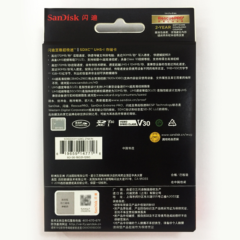 SanDisk128G170MB S camera memory card Panasonic UX90UX180 Sony NX200 Z150 FS5