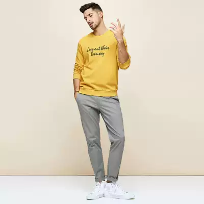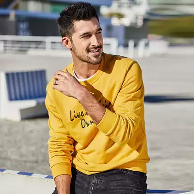 Special] Men's round neck thick cotton T men's autumn new European and American simple letter embroidered pullover shirt top 2234