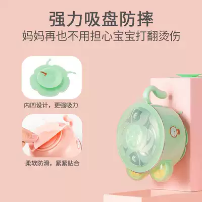 Baby water-filled warm bowl children's cutlery set eating bowl stainless steel anti-drop suction bowl baby supplement Bowl Spoon