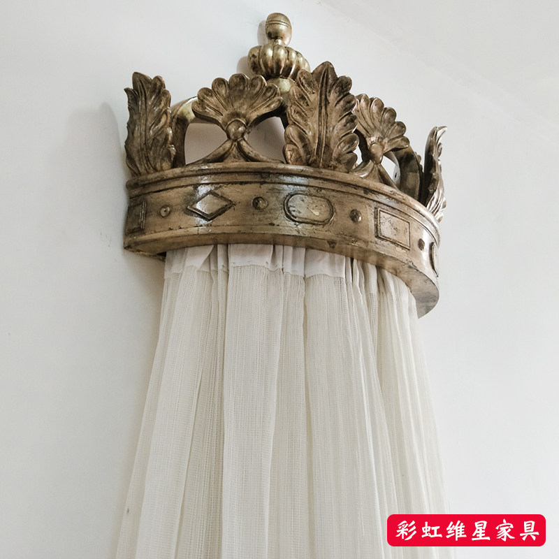 European style court bed mantle frame French hand carved Crown solid wood bedroom princess bed neoclassical decorative bed crown