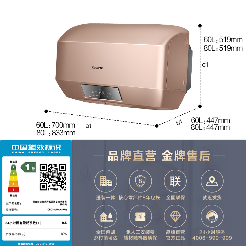 Haier Kasatti Electric Water Heater Home Bath Speed Heat Small 60 Liter MAX3 First-class Energy Efficiency Storage Type Intelligent