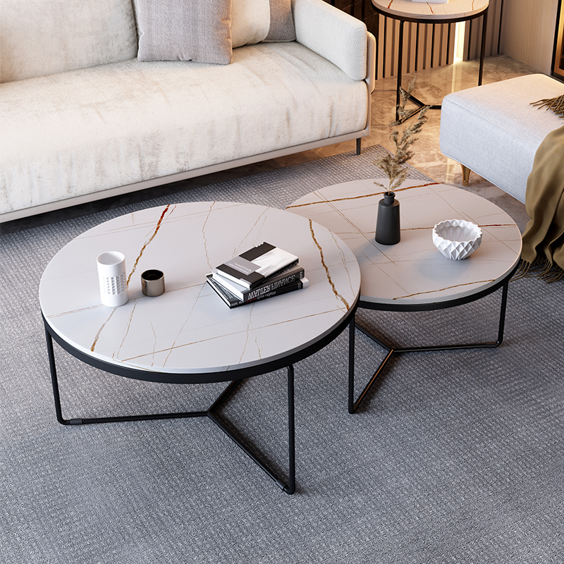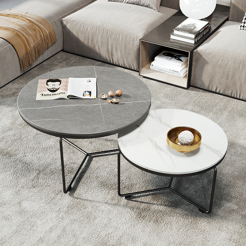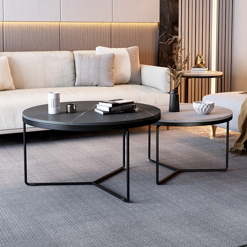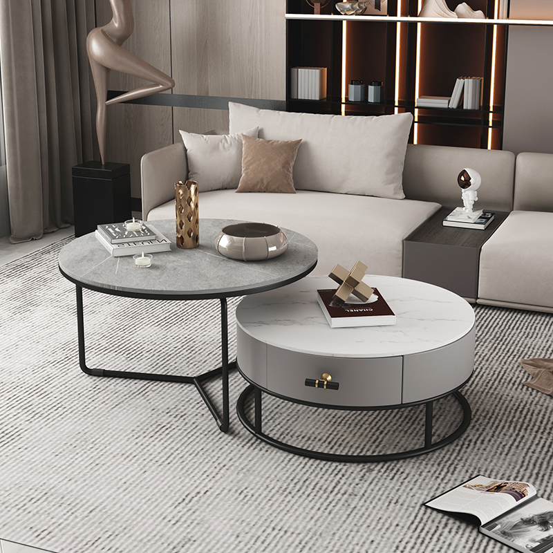 Italian light luxury rock plate coffee table Round marble tea table Modern simple living room household small apartment side several combinations