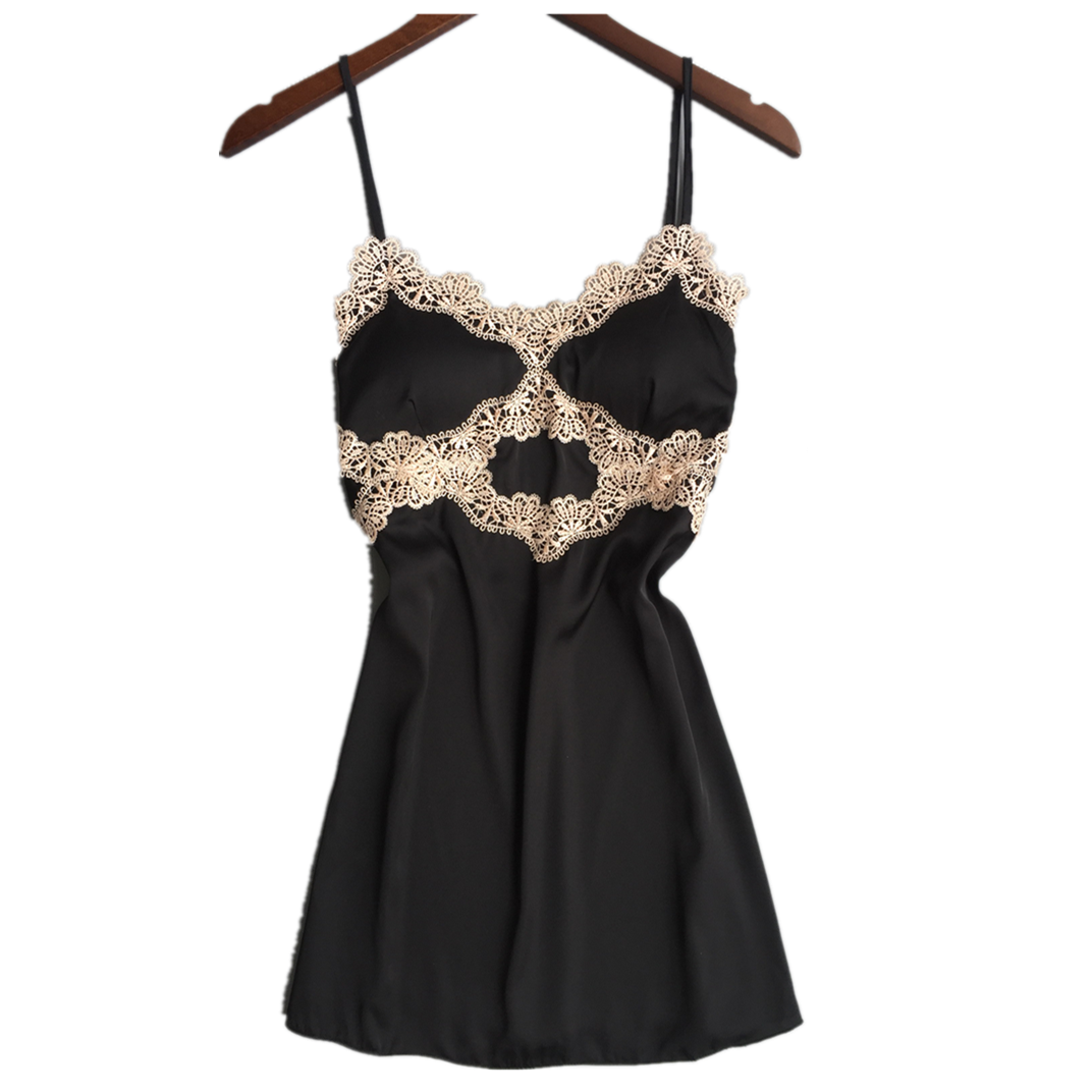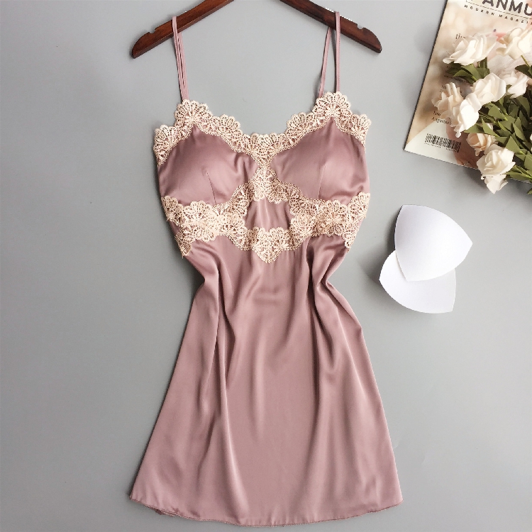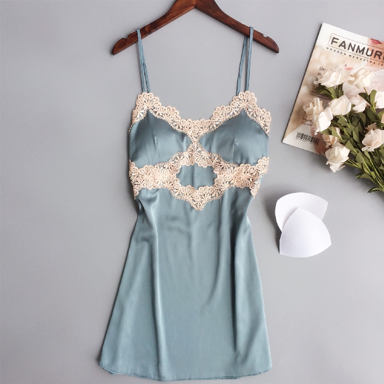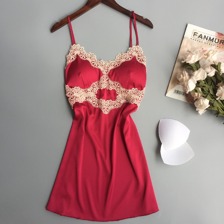 Sexy pajamas cute summer new ice silk thin lace sling chest pad gathered sexy adjustable leaky back nightdress