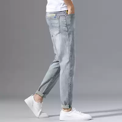 Hong Kong Tide brand summer thin jeans men's slim feet Korean trend summer light color casual long pants