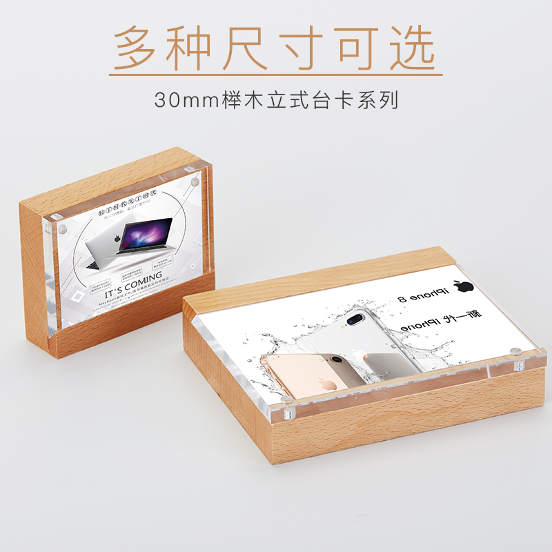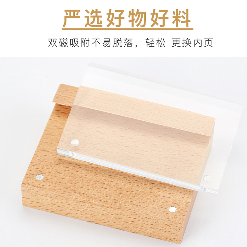 Acrylic Beech Wood Upright Table Card Table Plate Log Price Tag Table Card Table Plate Placard Swing Table Display Shelf Strong Magnetic Bench Card Solid Wood Parameter Label Card Display Card Customize