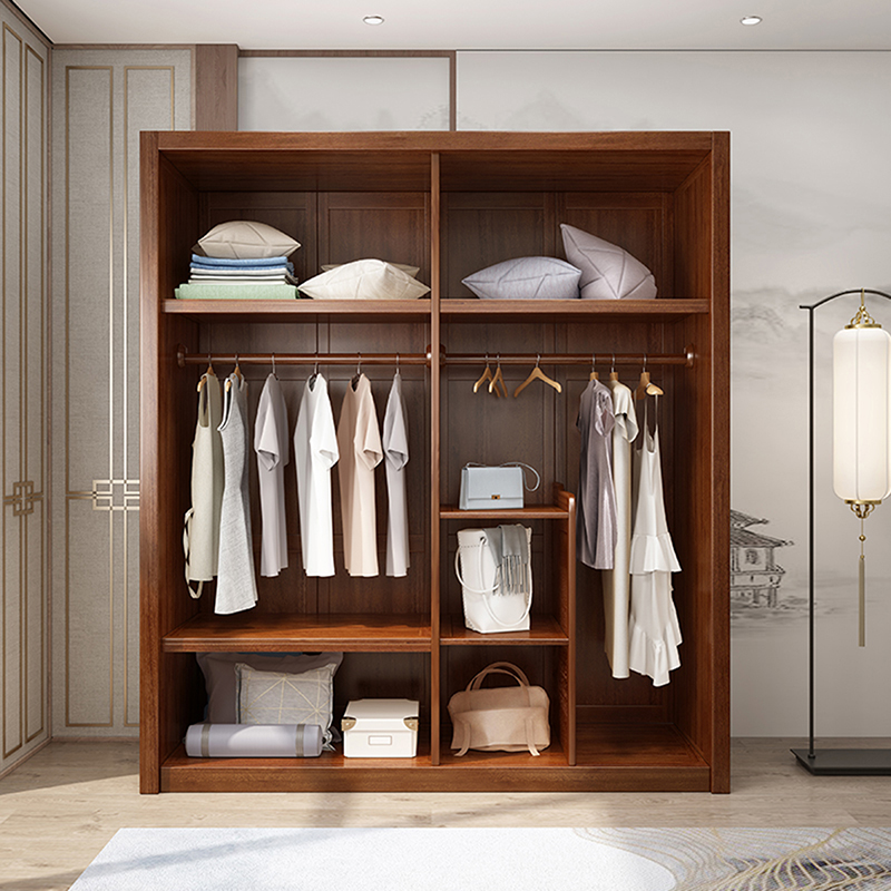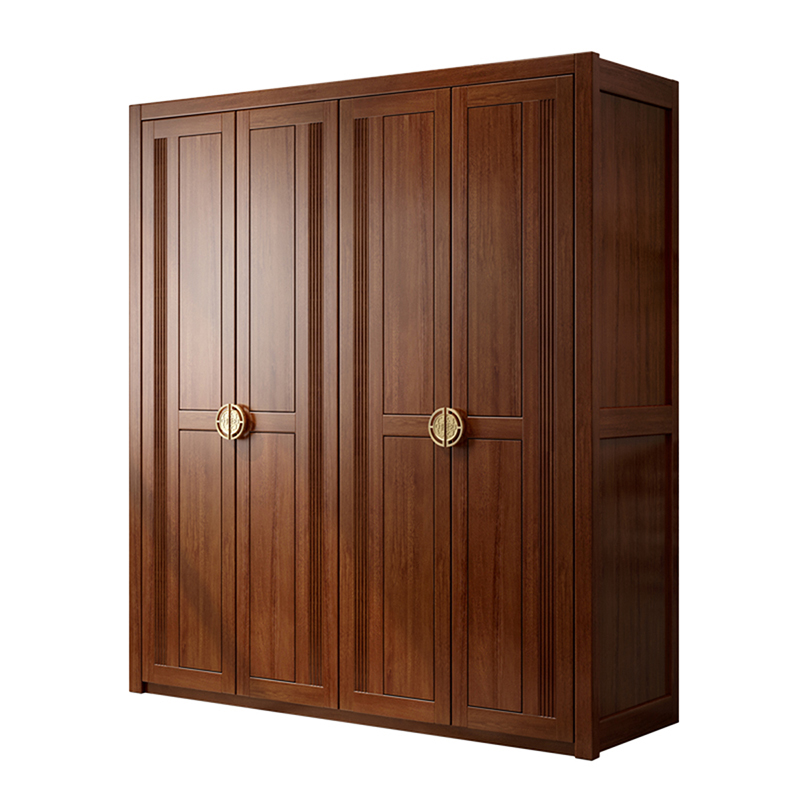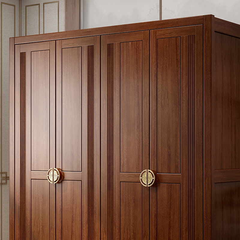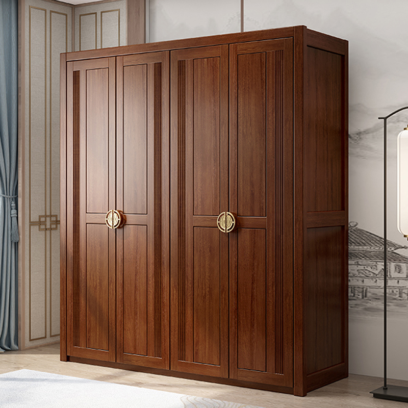 New Chinese Solid Wood Wardrobe Brief Modern Solid Wood Big Wardrobe Assembled Bedroom Gold Silk Sandalwood Solid Wood Four Doors Wardrobe