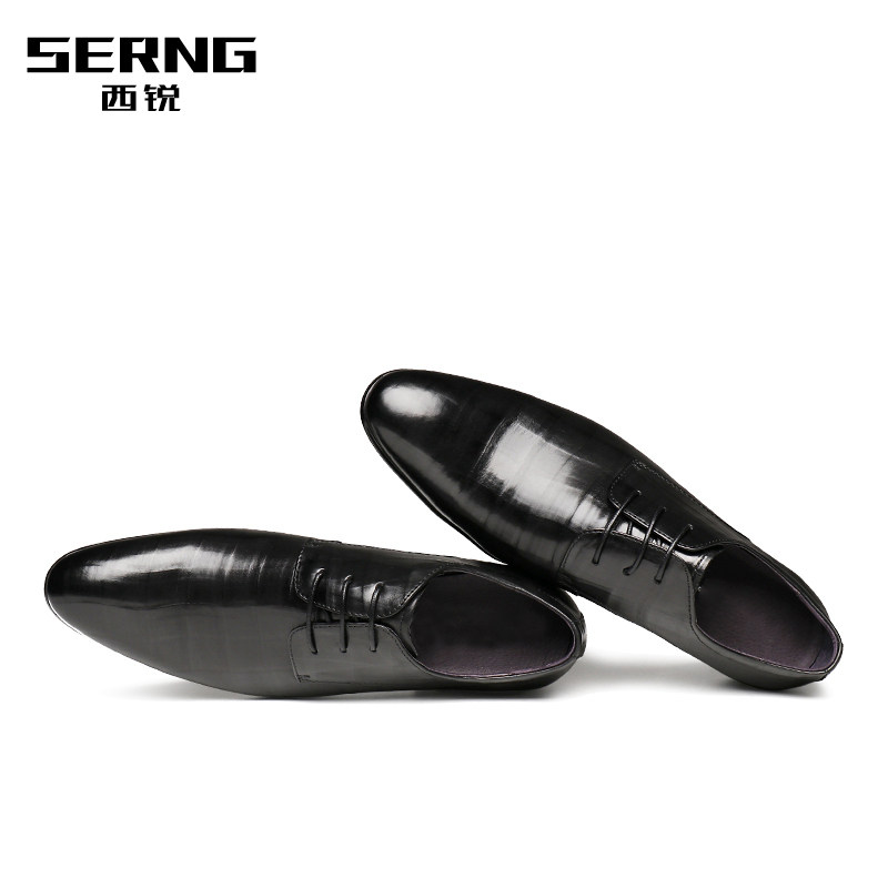 Cirui Korean version of casual pointed-toe shoes men's soft leather leather British business leather shoes men's wedding shoes lacing