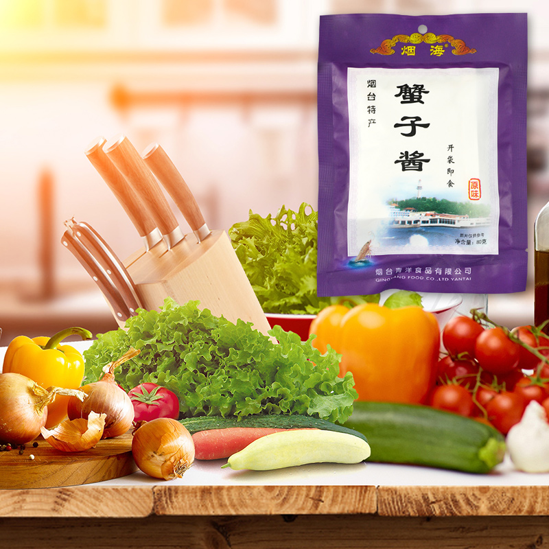 Crab roe Sauce Yantai specialty seafood sauce Yanhai brand mixed flavor sauce Ready-to-eat 80g FCL 40 bags