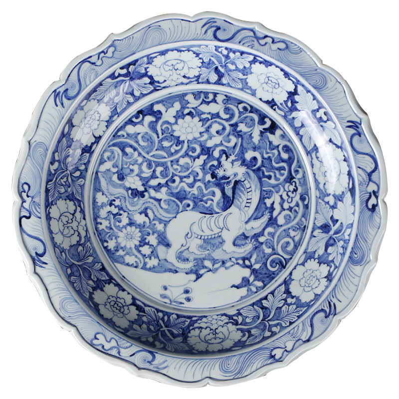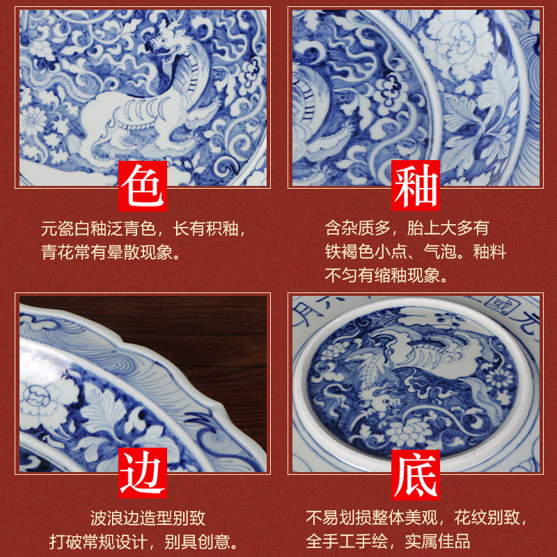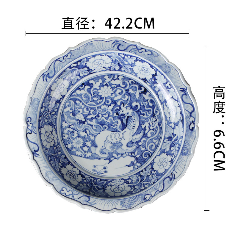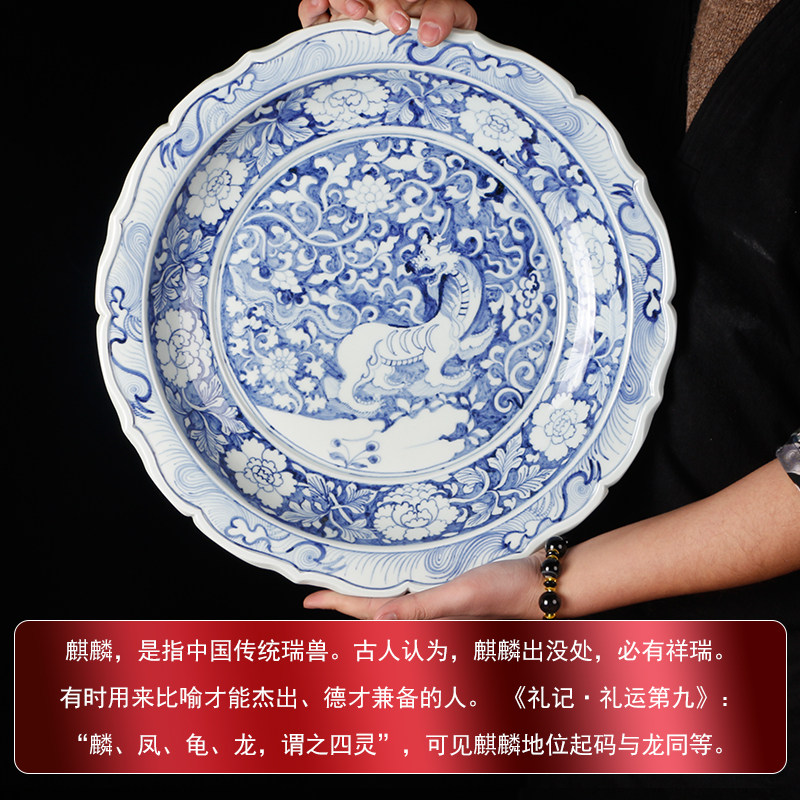 Jingdezhen antique qinghua porcelain Ming and Qing classical collection hand-painted Kirin plate ceramic ornaments town house living room