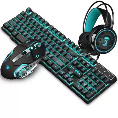 Real mechanical hand feel keyboard mouse set headset keyboard mouse three-piece game two-piece computer desktop wired notebook external office special external device E-sports two game film students