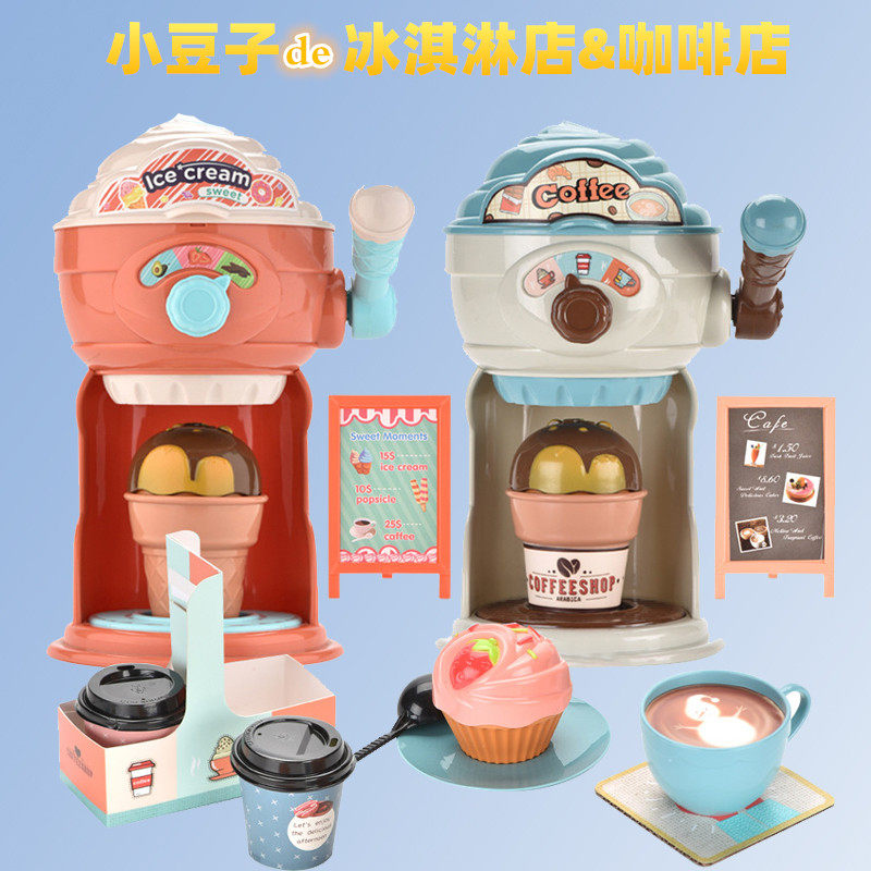 Buffalo Toy Zhen Small Bean Coffee Maker for Ice Cream Candy Skyscraper Wheel Color Clay Machine Baby Ice Cream Shop Bus