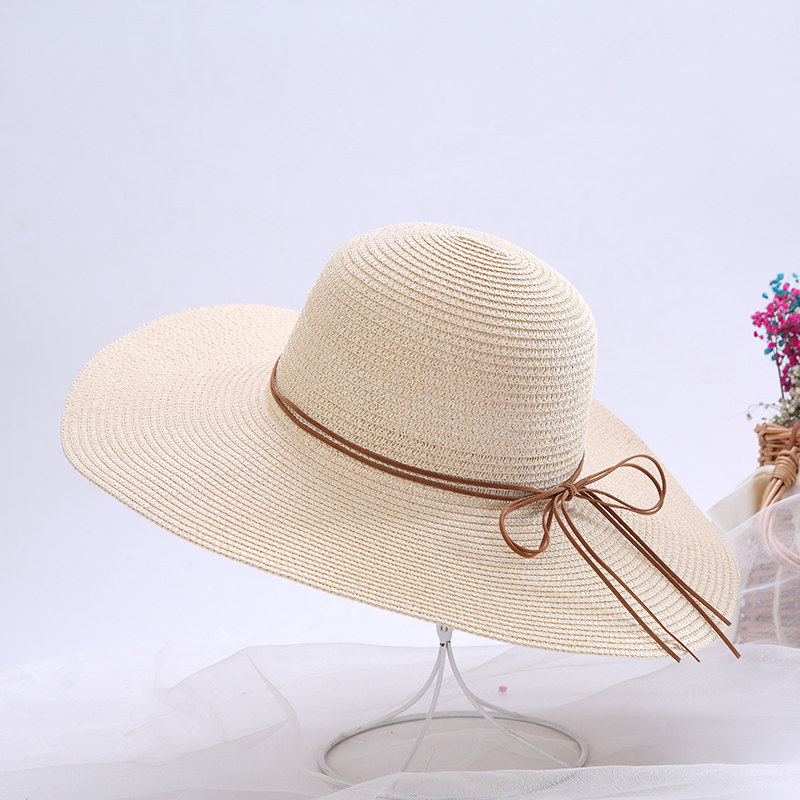 Summer Beach Straw Hat Female Korean Version Tide Seaside Big Brim Sunscreen Sunshade Going Vacation Versatile Big Edge Cool Hat