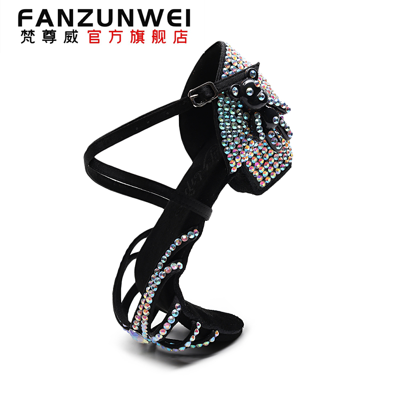 New Latin dance shoes for girls and girls with diamonds and diamonds for beginners children's middle-heeled dance shoes soft bottom summer