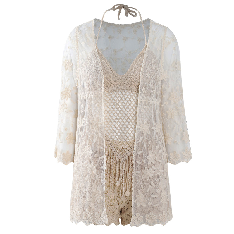 Hot spring swimsuit female fairy fan sexy Korean ins style knitted three-piece set is thin and covers the belly and small chest gather swimsuit