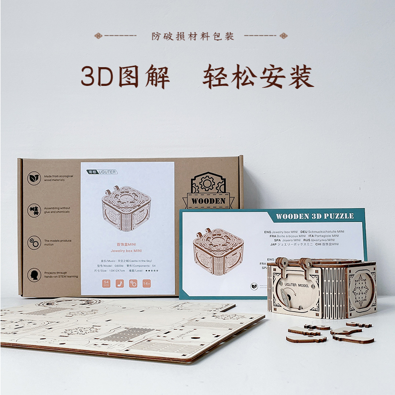 Birthday Gifts Send Girls Eight Music Boxes DIY Handmade Assembled Wooden Models Solid Jigsaw Puzzle Creative Children Teacher