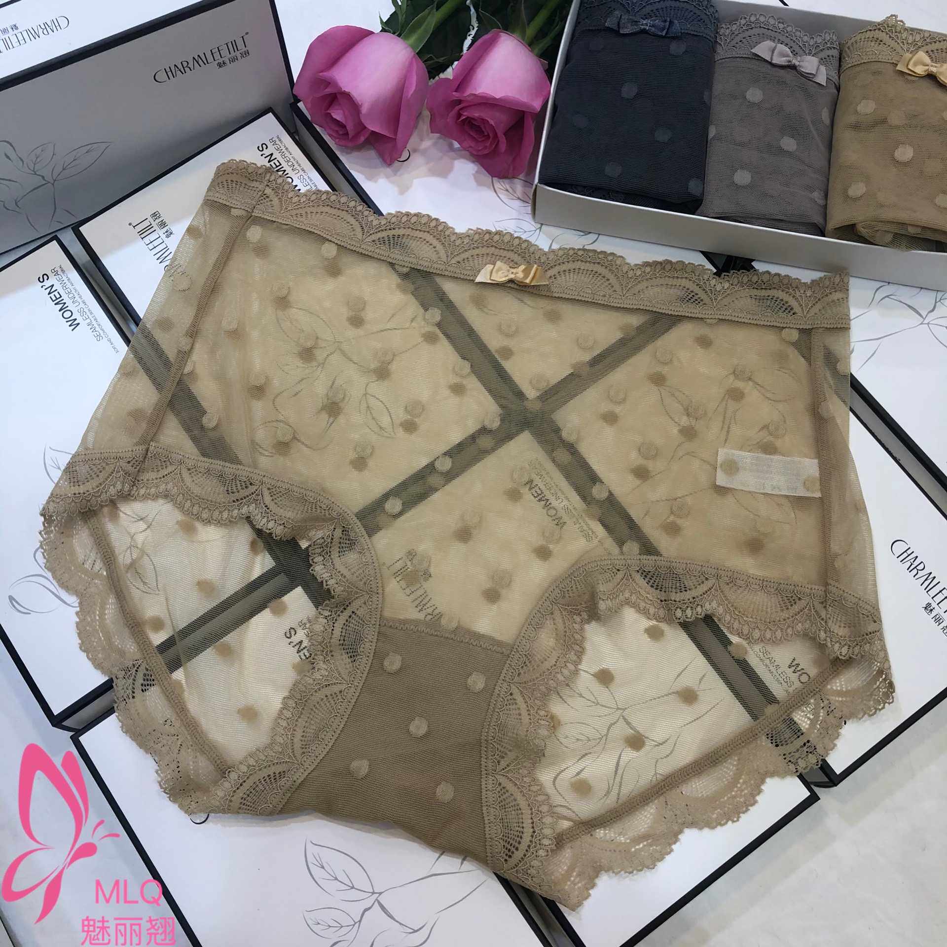 Charming underwear women's cotton antibacterial breathable medium high waist large size seamless lace fashion explosion style sexy hip package