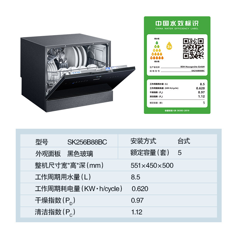 SIEMENS Imported table embedded dual-purpose dishwasher fully automatic sterilization 5 sets SK256B88BC