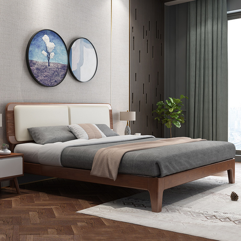 Bed modern minimal household bedroom 1 8 m solid wood double bed for rental room for Nordic 1 5 m single bed wood bed