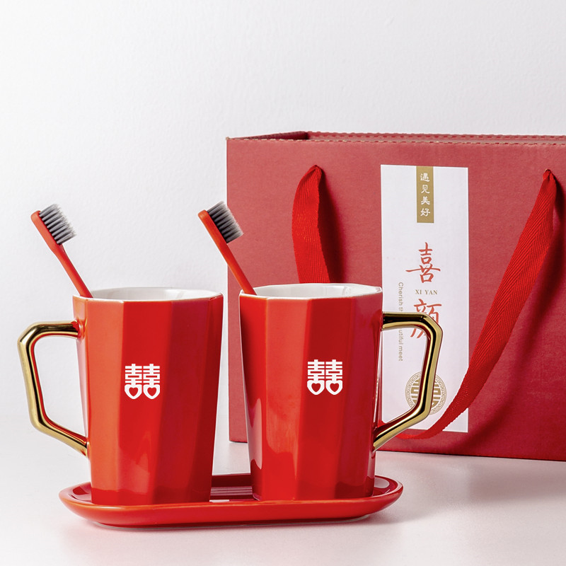Wedding Red Wash Cup Suit Wedding Celebration Items Creative Couples Toothbrushing Cups Tooth Cylinders Gargling Cups A Pair of Custom