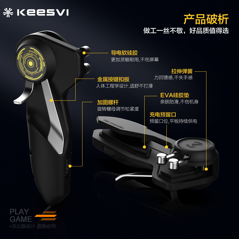 KEESVI tablet chicken-eating artifact Huawei Apple ipad computer dedicated mobile game set handle physical mechanical button automatic pressure gun auxiliary external device two four keys six fingers Android