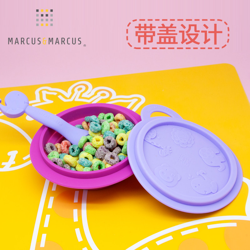 Canada marcus silicone folding bowl baby tableware baby food supplement bowl portable anti-fall children's bowl with lid