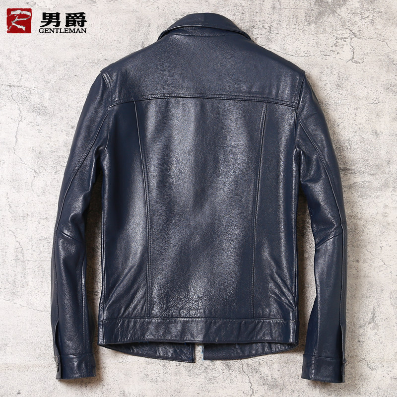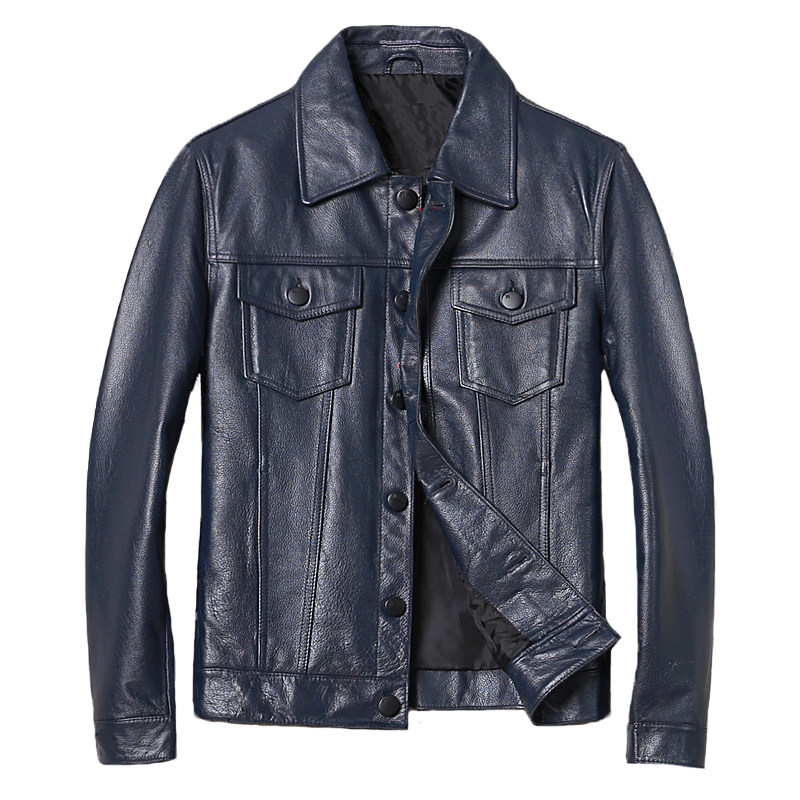 Clearance processing men's leather leather fashion casual business leather jacket Short slim buckle men's bright color coat