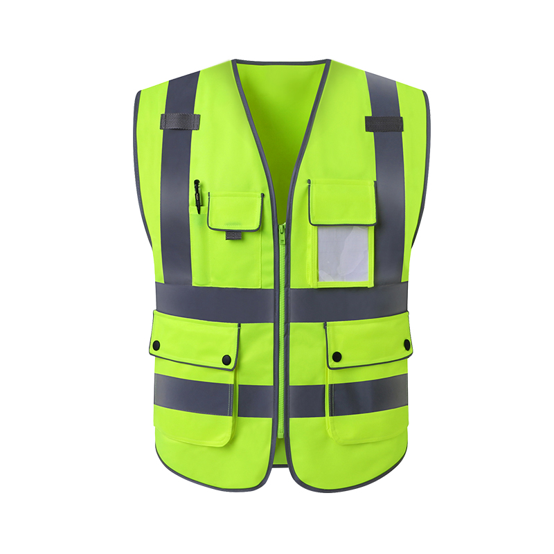 Positive Ed Reflective Vest Construction Safety Protective Clothing Leader Multi-Pocket Traffic Sanitation Fluorescent Yellow Waistcoat Construction Work
