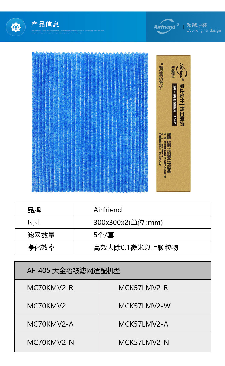 Suitable for Daikin air purifier filter net filter consumables Pleated filter paper MC70KMV2 MCK57LMV2