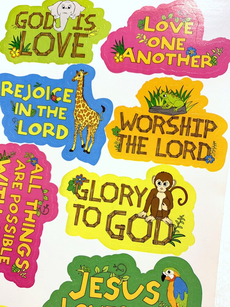 Children's Stickers Elephant Giraffe Frog Parrot and other English Labels