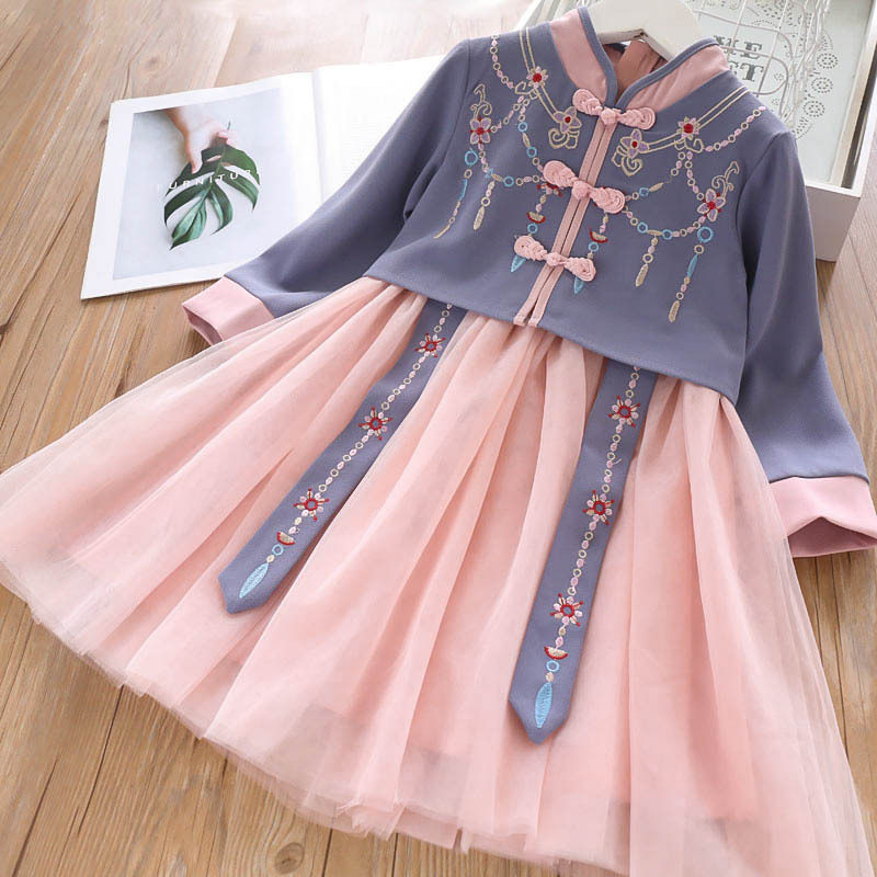 Girls' Hanfu skirt 2022 children's clothing autumn children's super fairy Chinese style embroidered ribbon skirt baby ancient costume Tang suit