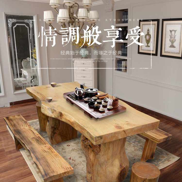 Kung fu tea table and chair combined tea table suite simple modern commercial office log tea table bubble tea table new Chinese style