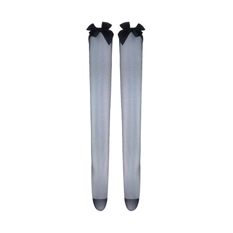 Virtuous Three Dazzle Hancos Sexy Black Silk Socks Thigh Socks Ultrathin Transparent Line Mister Butterfly knot over kneecap stockings