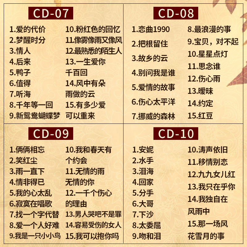On-board Cd Disc Classic Old Songs Nostalgia Golden Songs Songs No Distortion Black Gel Record Genuine cars CD CDs