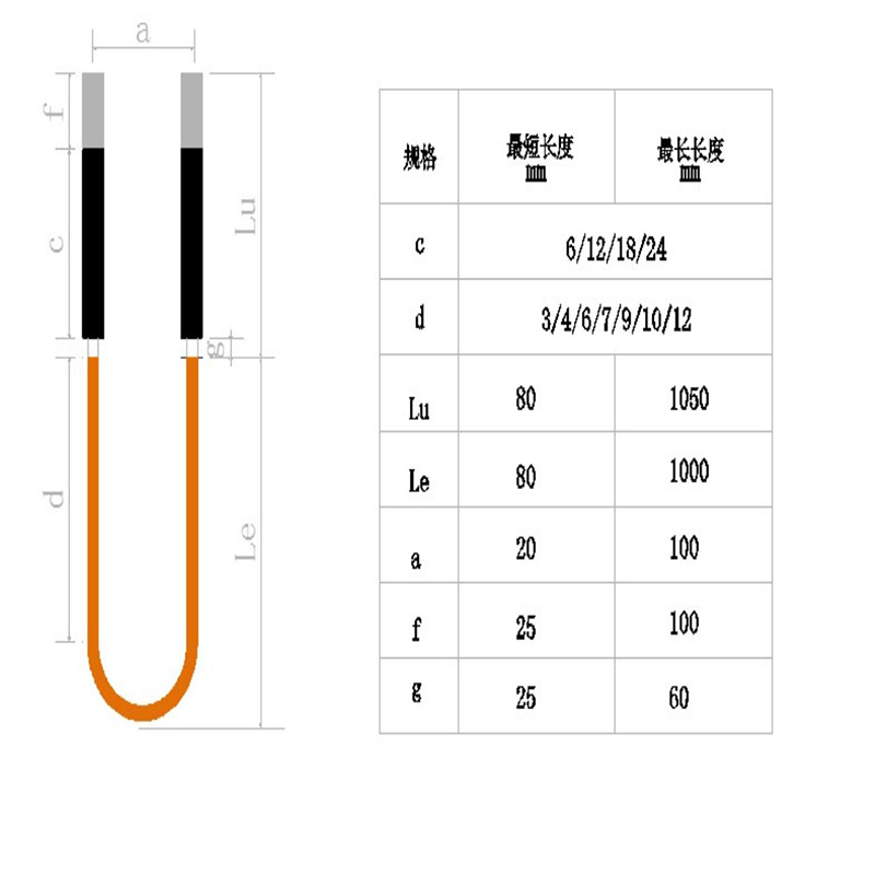 U-type silicon molybdenum rods in the shape of a