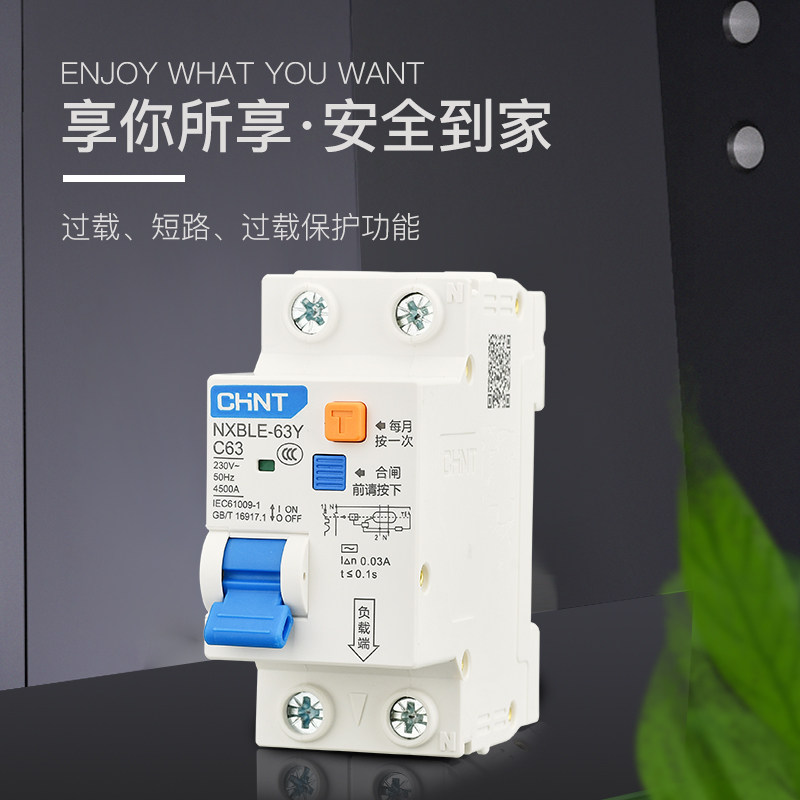 Positive Tai leakage circuit breaker NXBLE-63Y63A 2 bits double wire small air switch with leakage high power