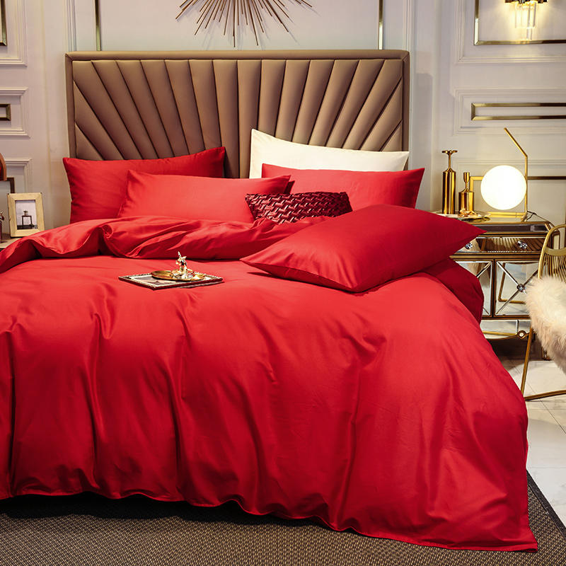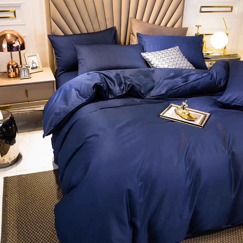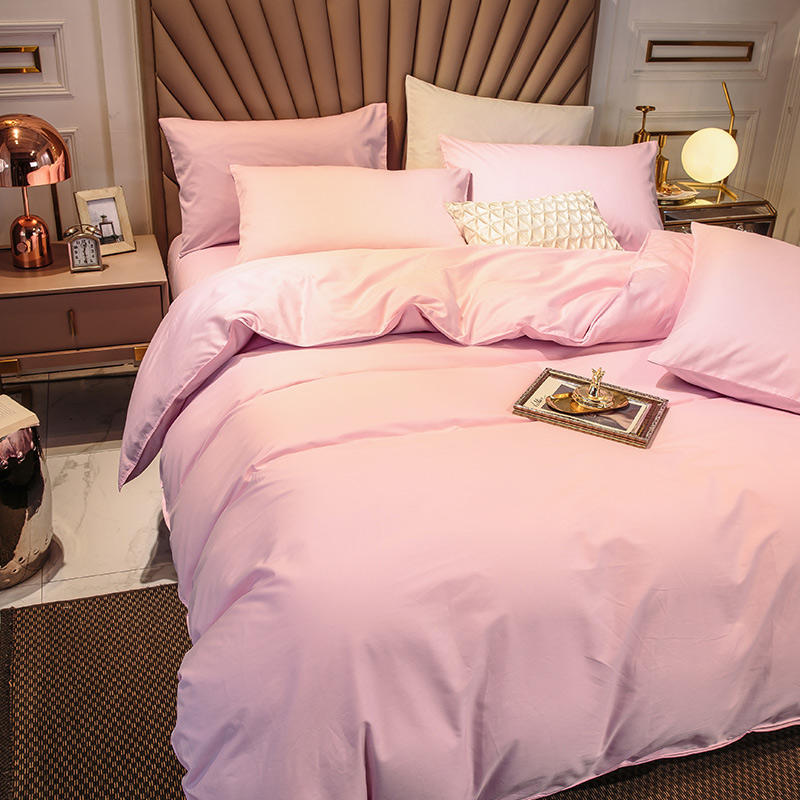 Export Nordic style pure color long-staple cotton four-piece set cotton pure cotton bed sheet quilt cover set fitted sheet bed bag set hotel