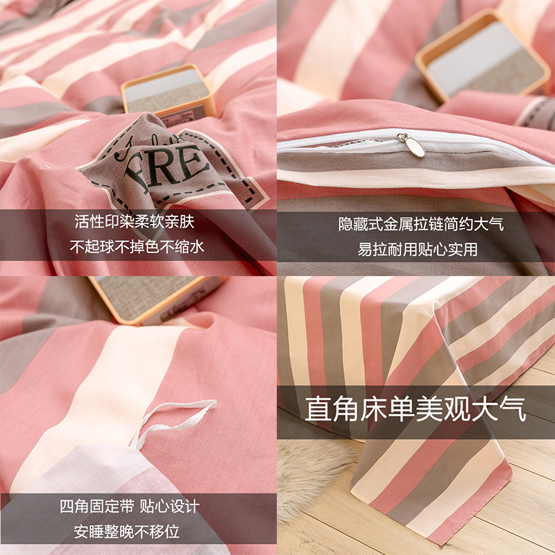 Total cotton four pieces of jacket pure cotton quilt cover bed bamboo linen net red style 4 pieces of lodgings Dormitory Three Sets Student Bed supplies 4