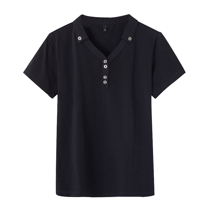 Miamashman flagship store official website short-sleeved T-shirt women's 2021 summer new solid color Korean version of the lapel slim top