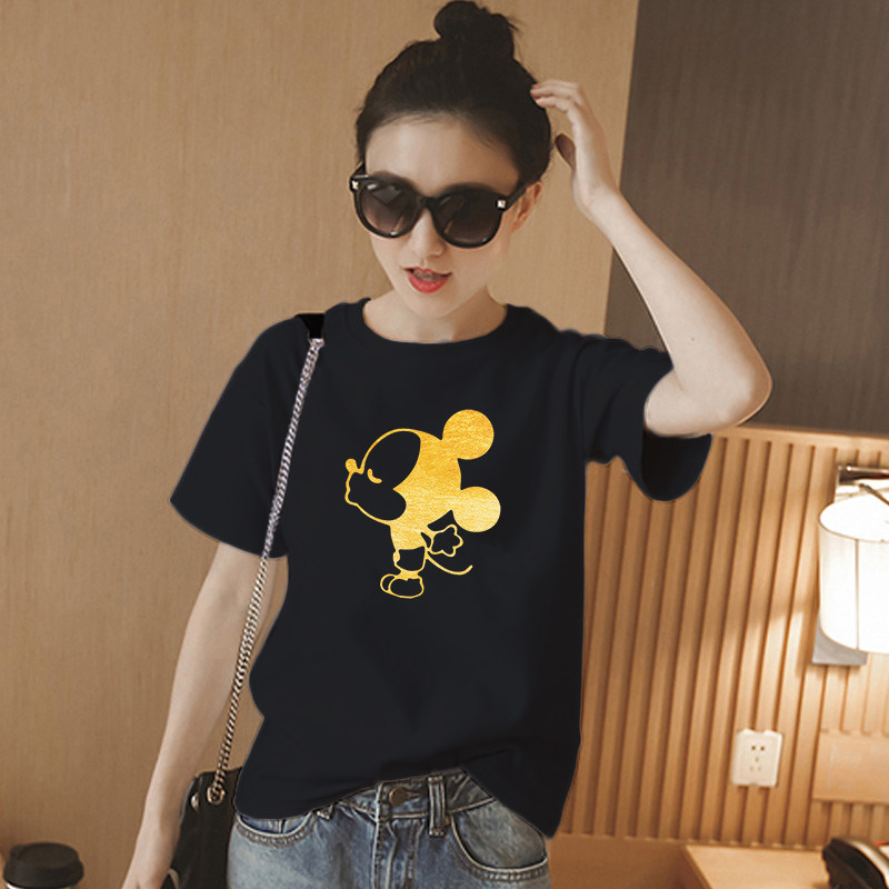 Mickey black t-shirt women's summer white short-sleeved pure cotton 2021 new loose Korean female ins tide top t-shirt
