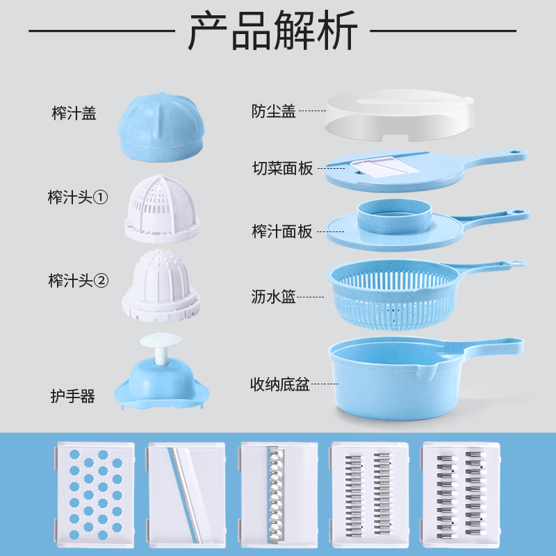 Nordic powder vegetable cutter 11-piece set (with transparent dust cover) Nordic blue vegetable cutter 11-piece set (with transparent dust cover)