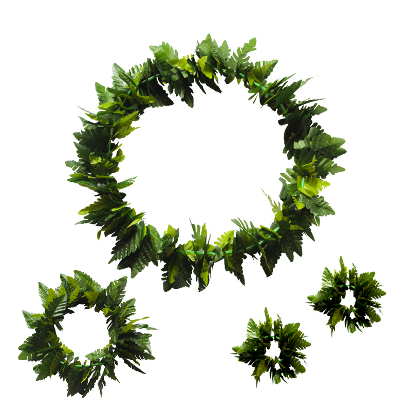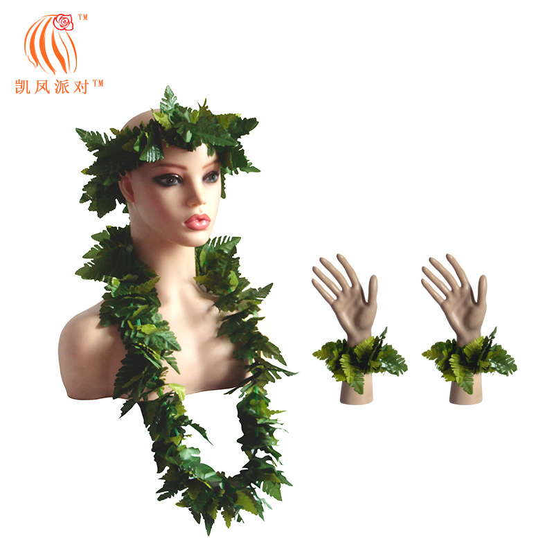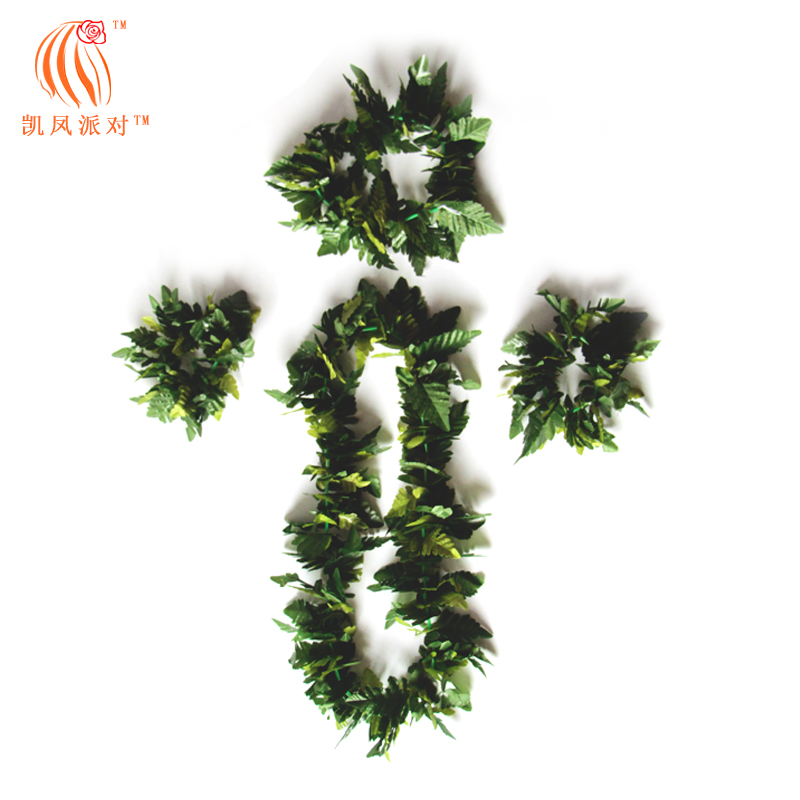 Hawaiian adult children's jungle series simulation green leaf wreath 4 sets of stage performance decoration props new