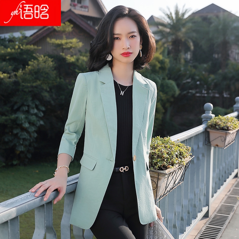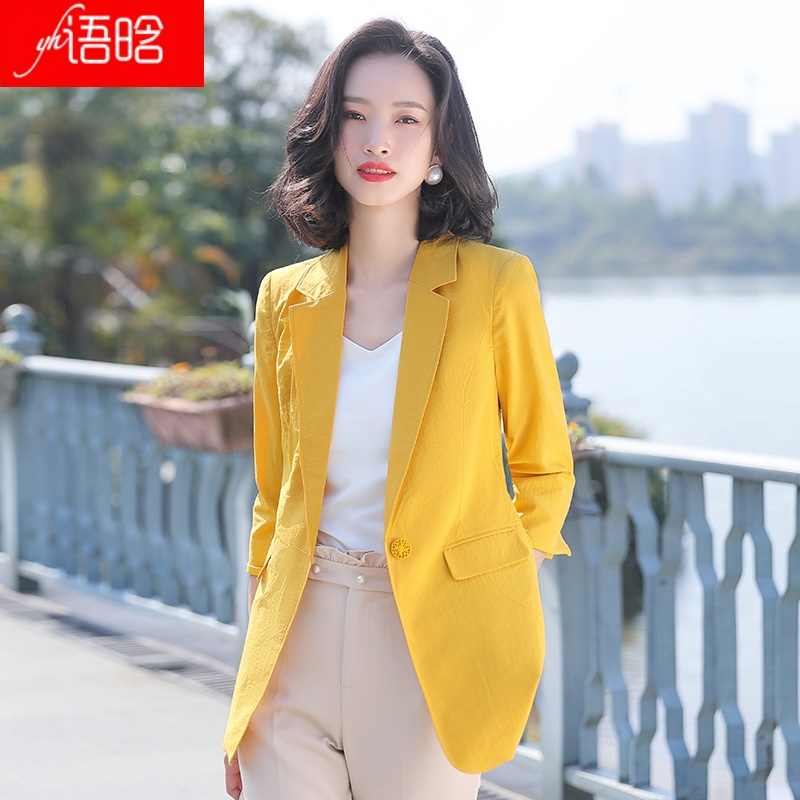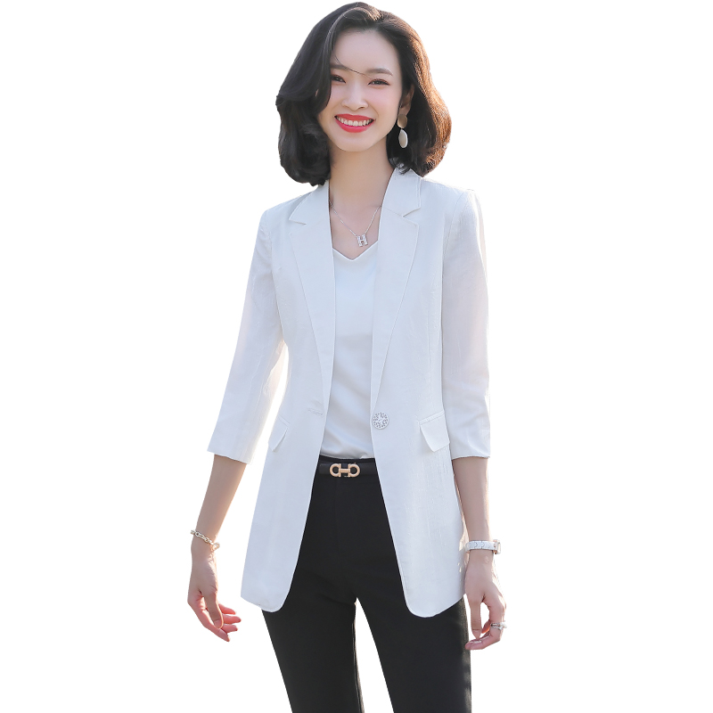 White three-quarter sleeve suit jacket women's summer thin linen slim top casual mid-sleeve small suit suit summer